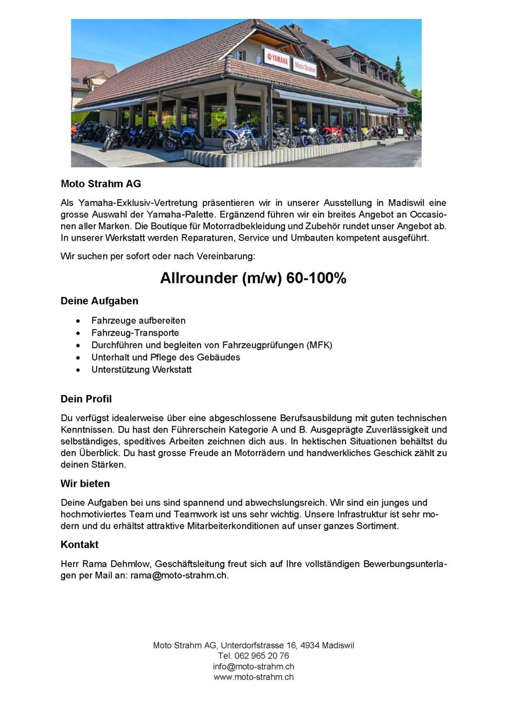 Oder per Mail an: rama@moto-strahm.ch